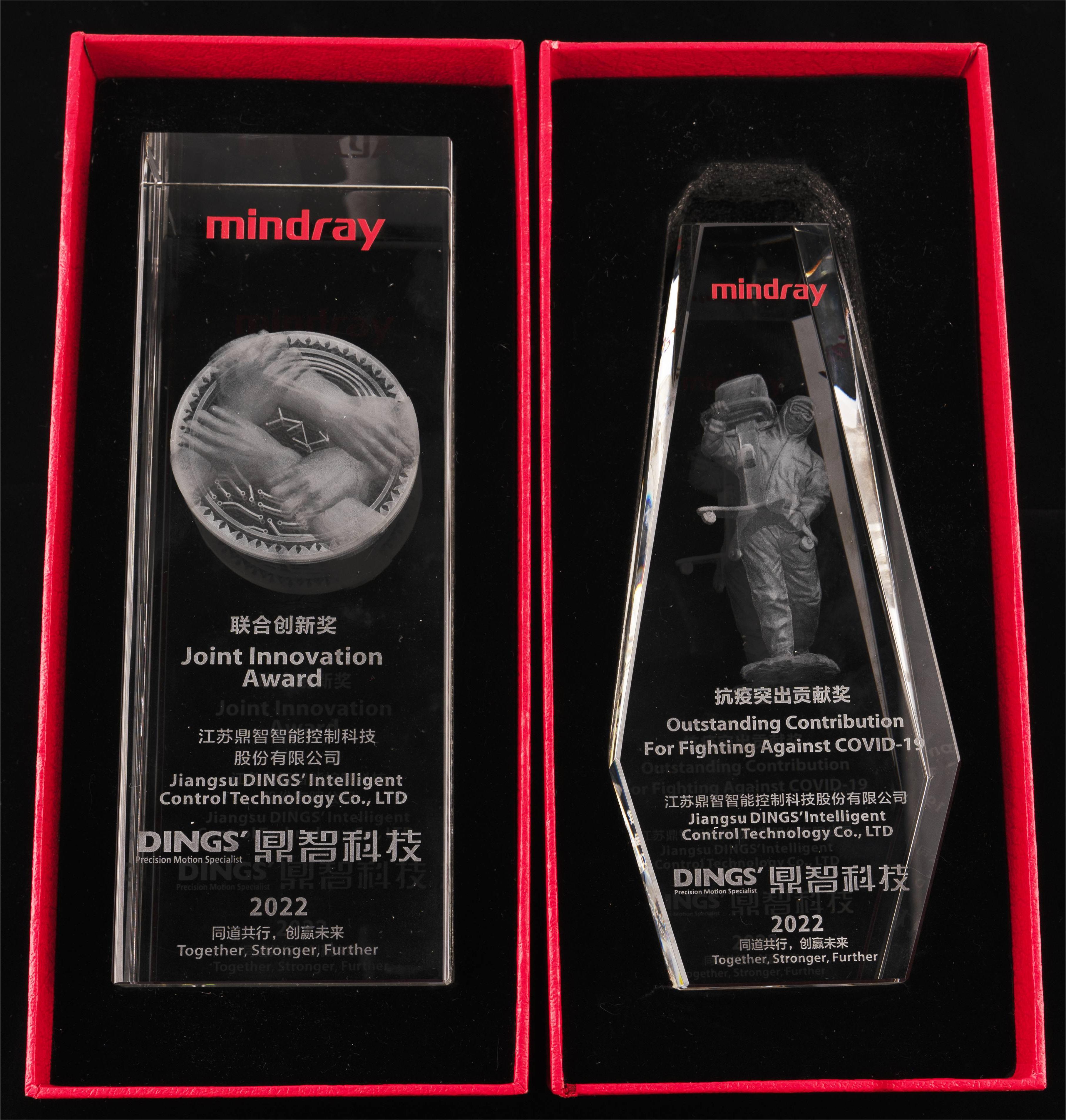 Jiangsu DINGS'는 Mindray Medical이 수여하는 "공동 혁신상"과 "우수 방역 공로상"이라는 두 개의 주요 상을 수상했습니다!
