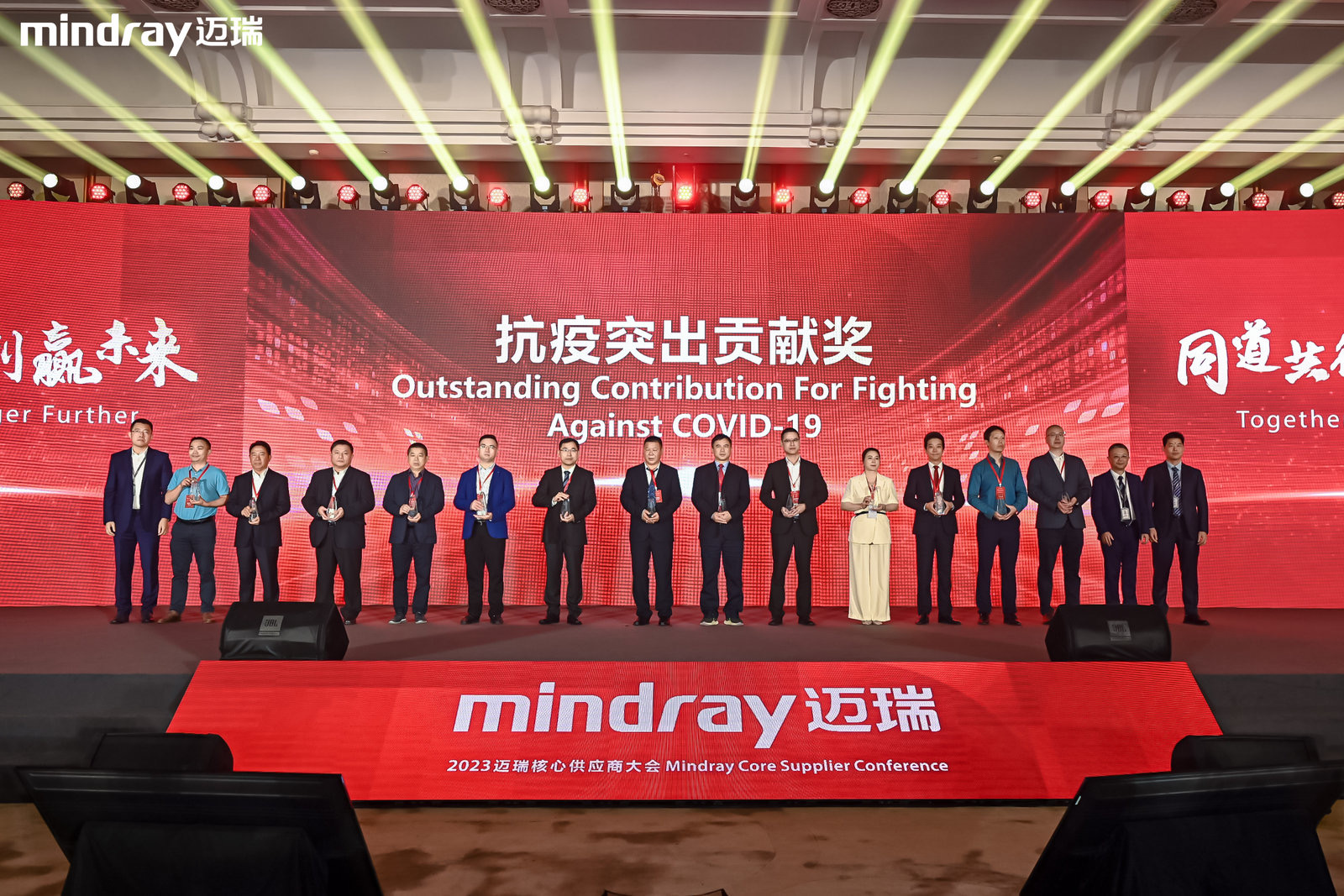 컨퍼런스에서 Mindray는 파트너들에게 감사를 표하고 그 동안의 협력 성과를 바탕으로 시상했습니다. Jiangsu DINGS'는 강력한 기술 혁신 능력과 생산과 완벽하게 협력할 수 있는 실행 능력으로 Mindray로부터 인정받았으며 수많은 공급업체 중에서 두각을 나타내고 "공동 혁신상"을 수상했습니다! 동시에 2020년 "가장 아름다운 방역상"을 수상한 이후 다시 "방역 우수 공로상"을 수상했습니다!