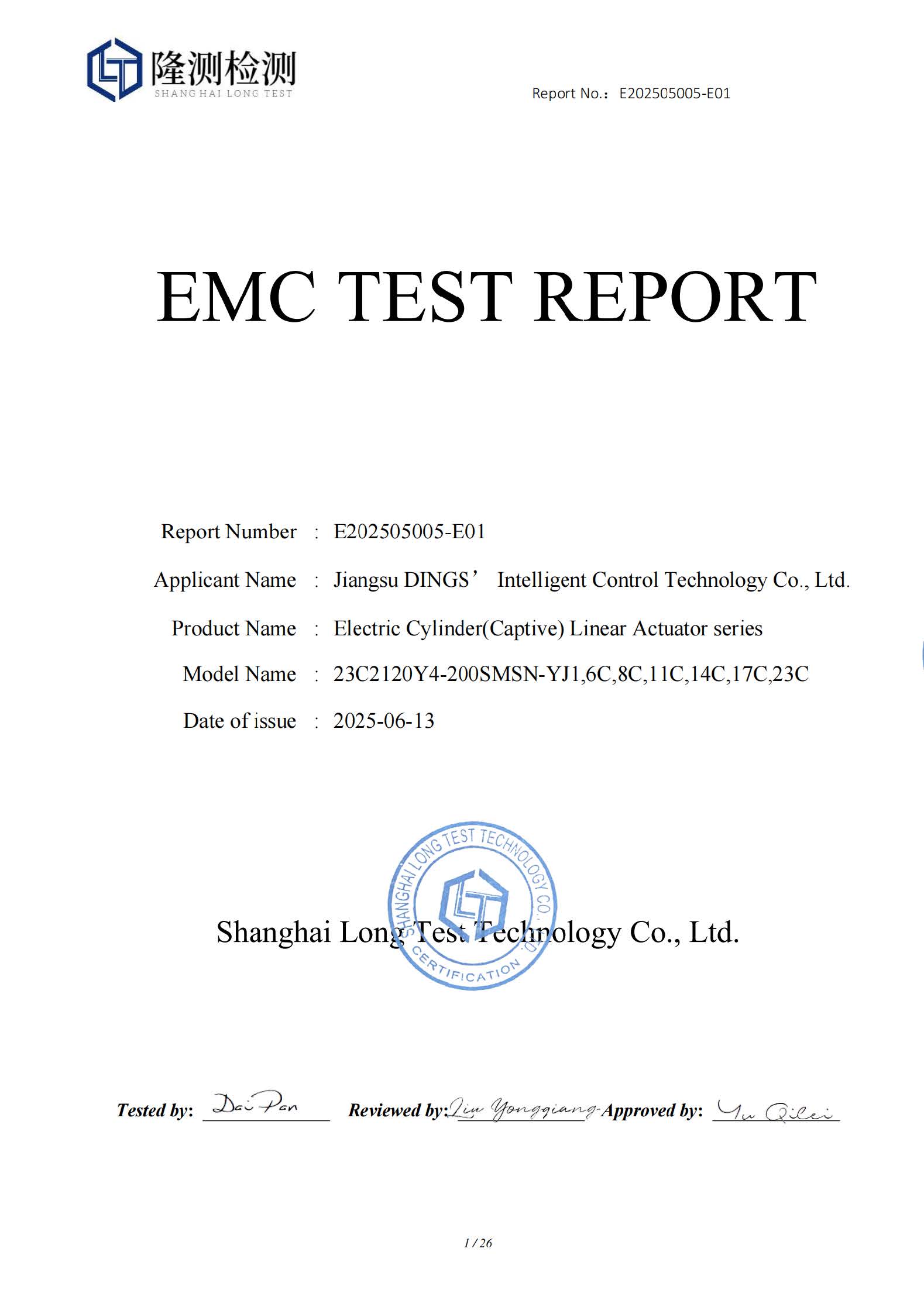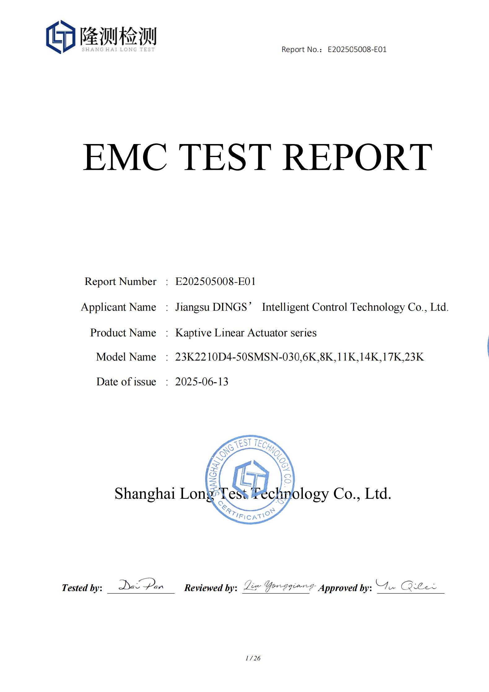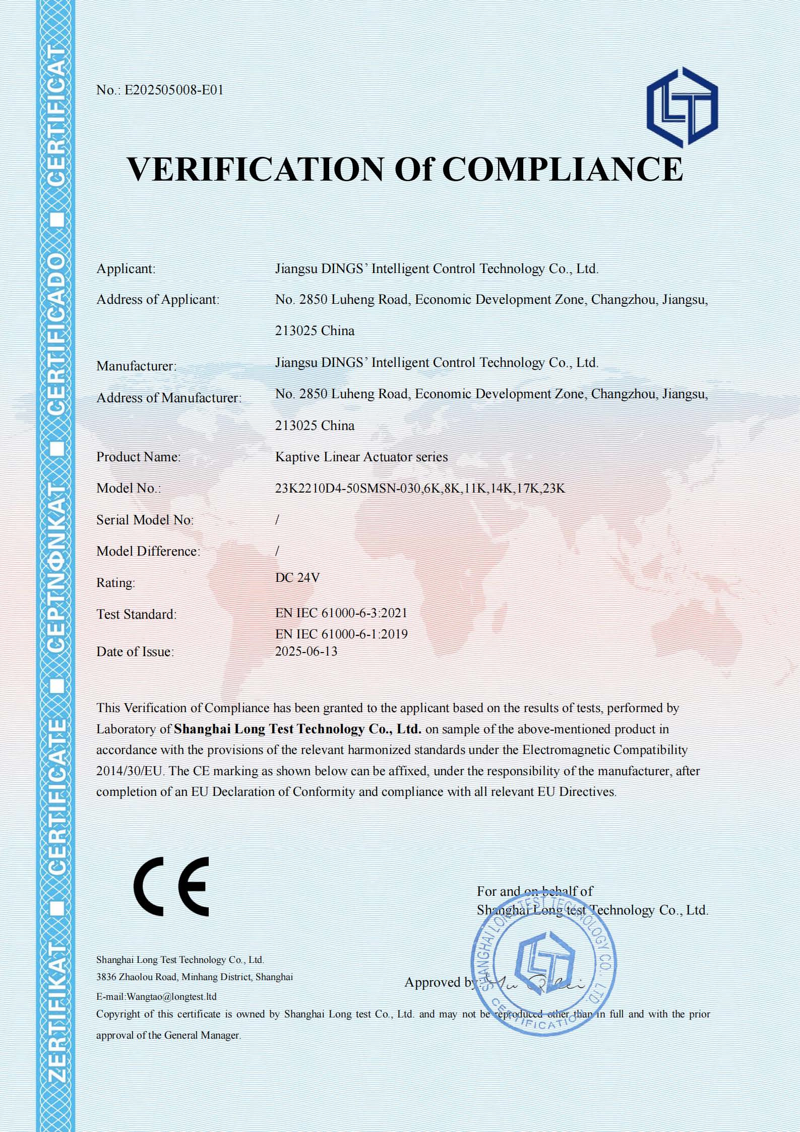 CE - External Linear Actuator [ EMC Report ]