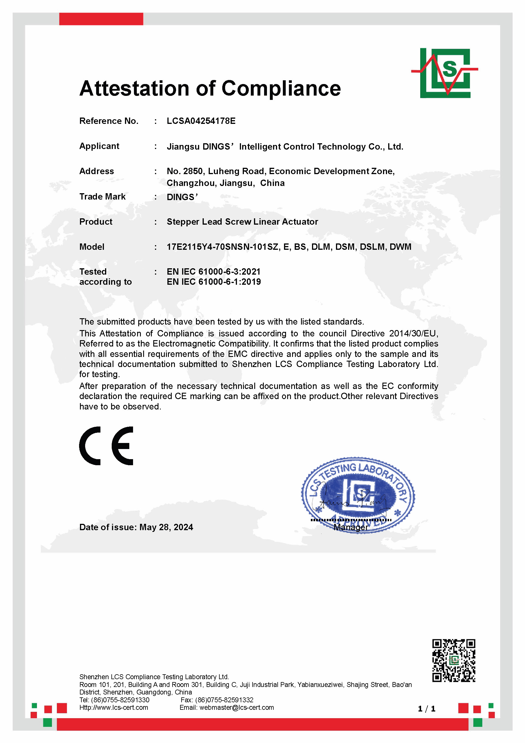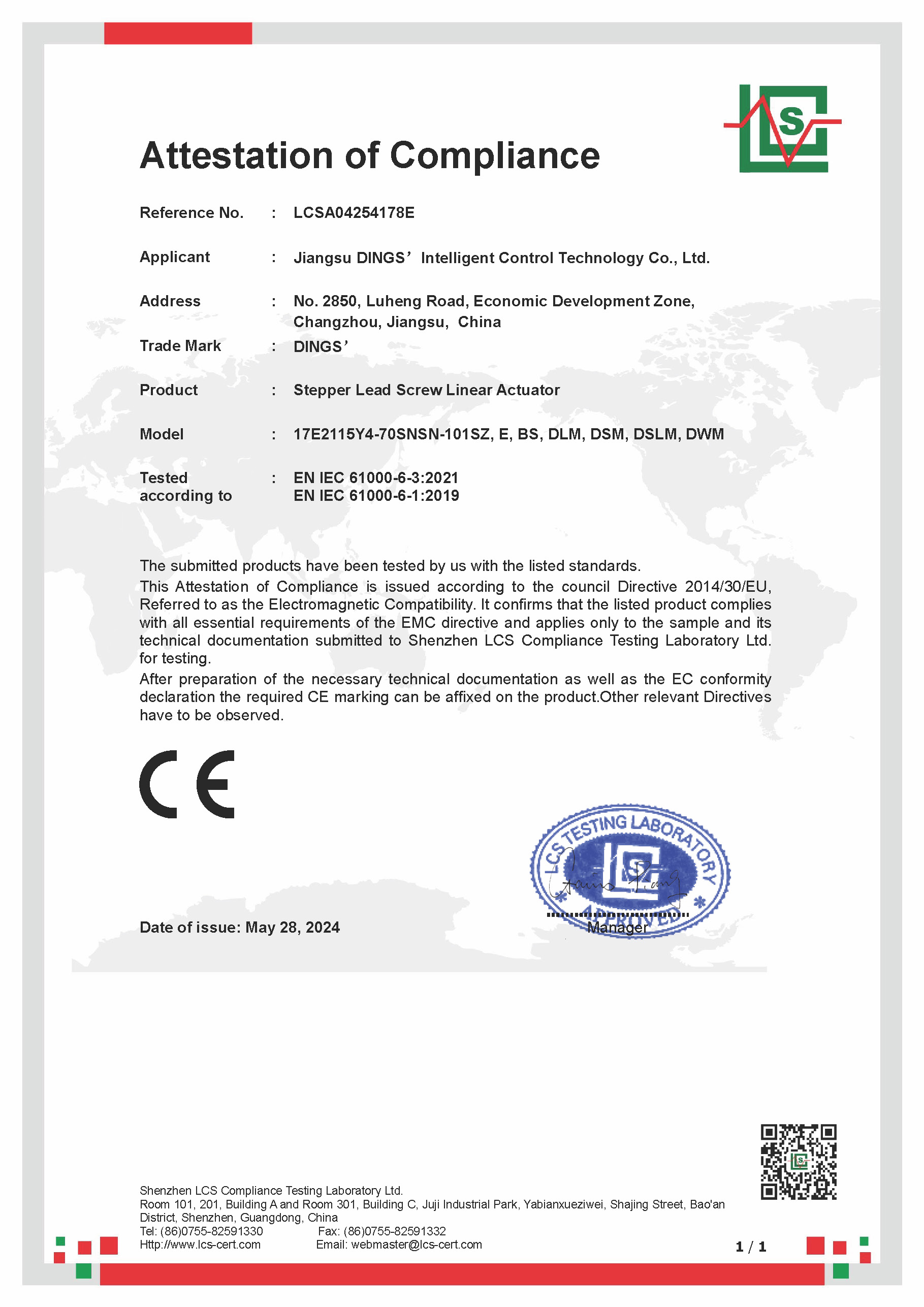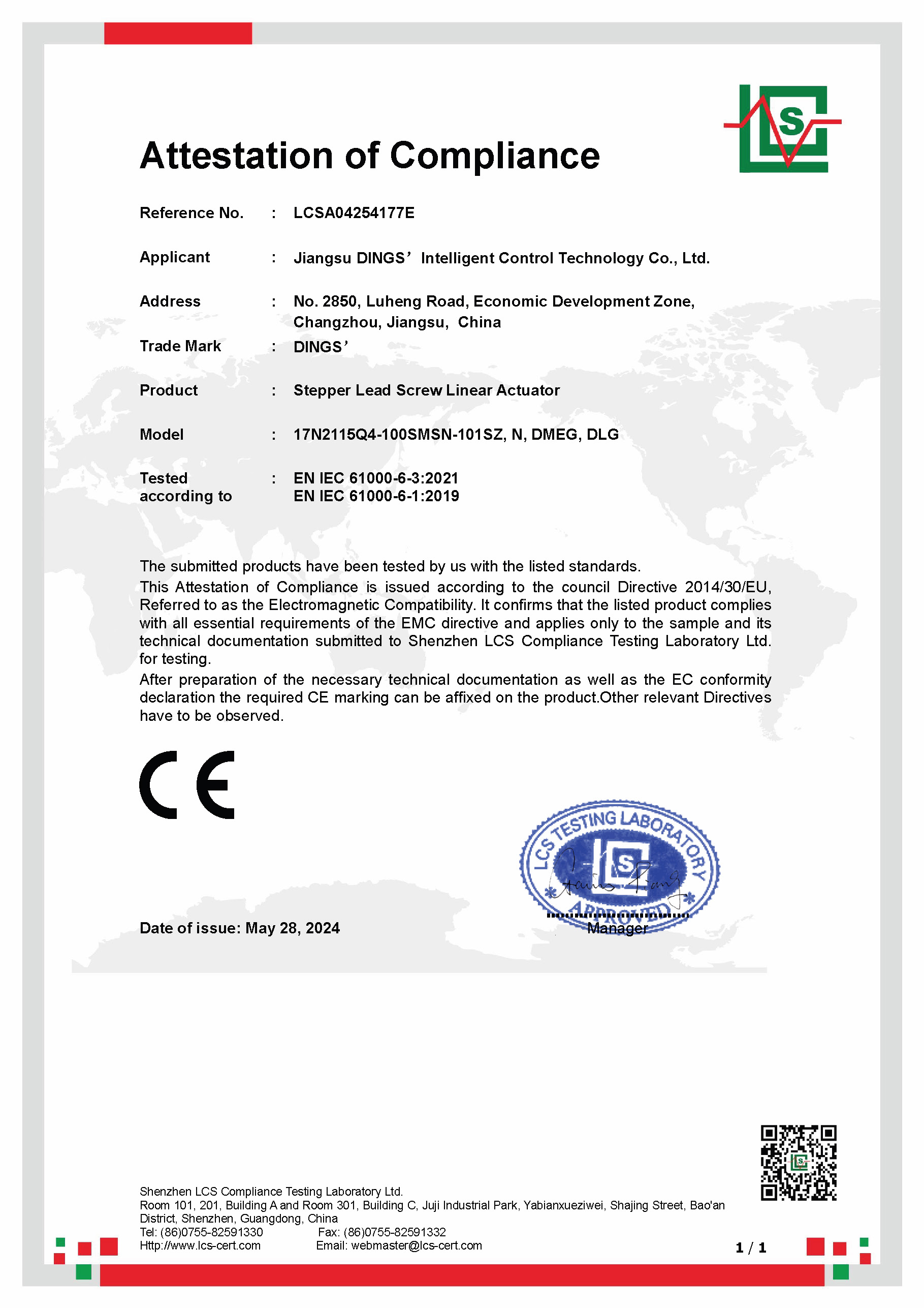 CE - External Linear Actuator [ EMC Report ]