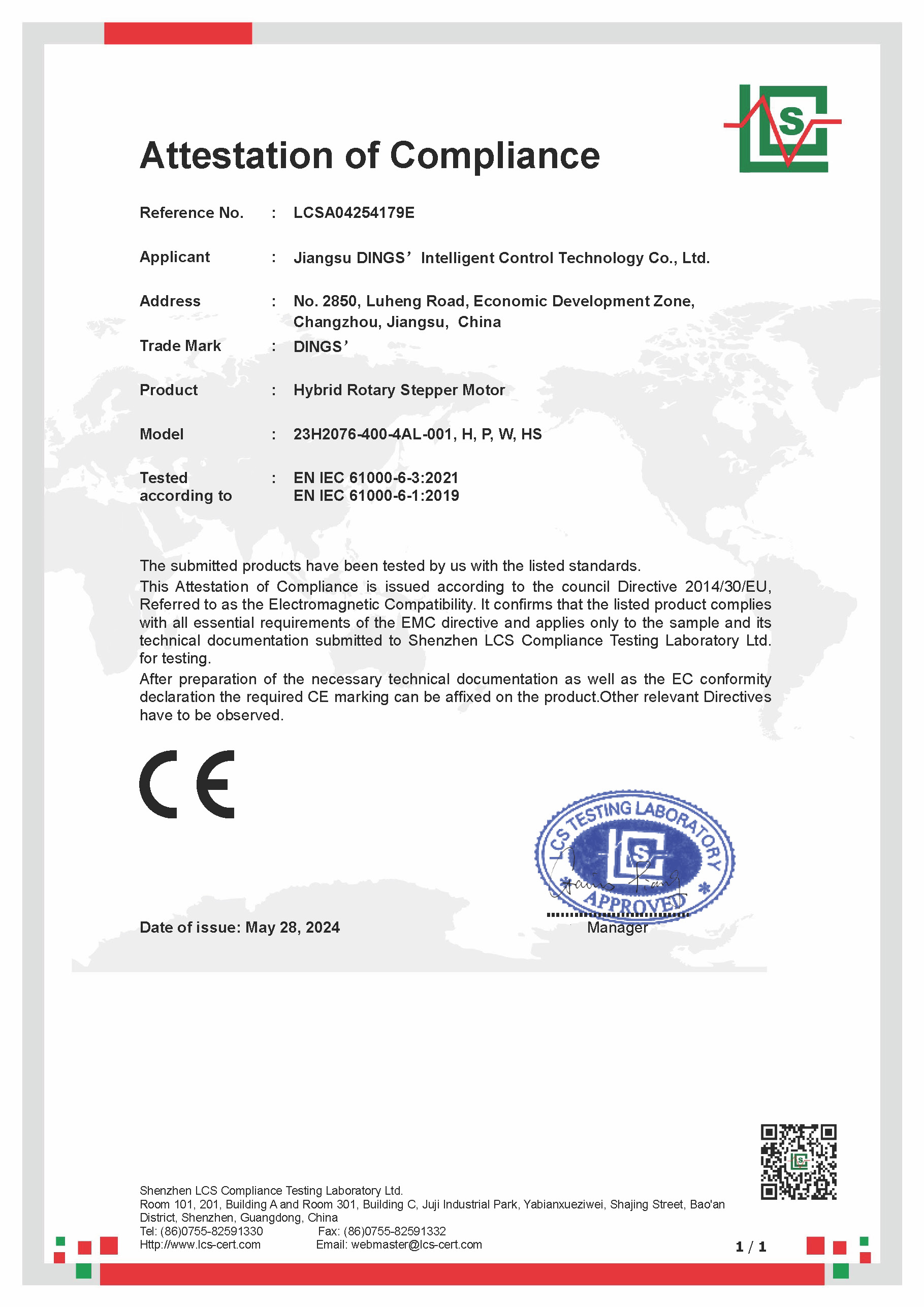 CE - Hybrid Rotary Stepper Motor [ EMC Report ]