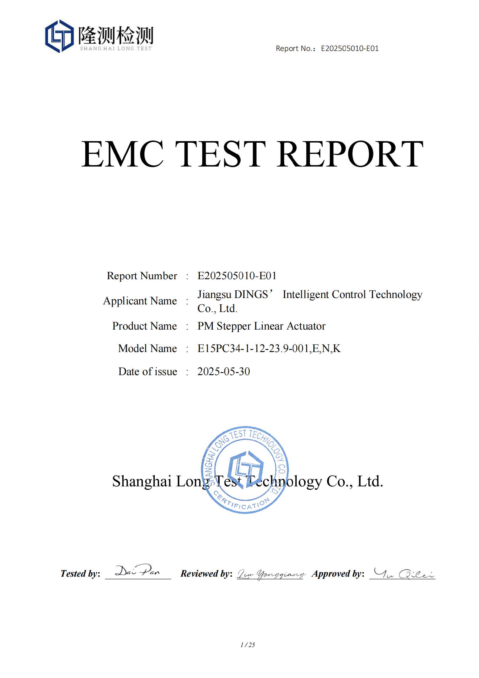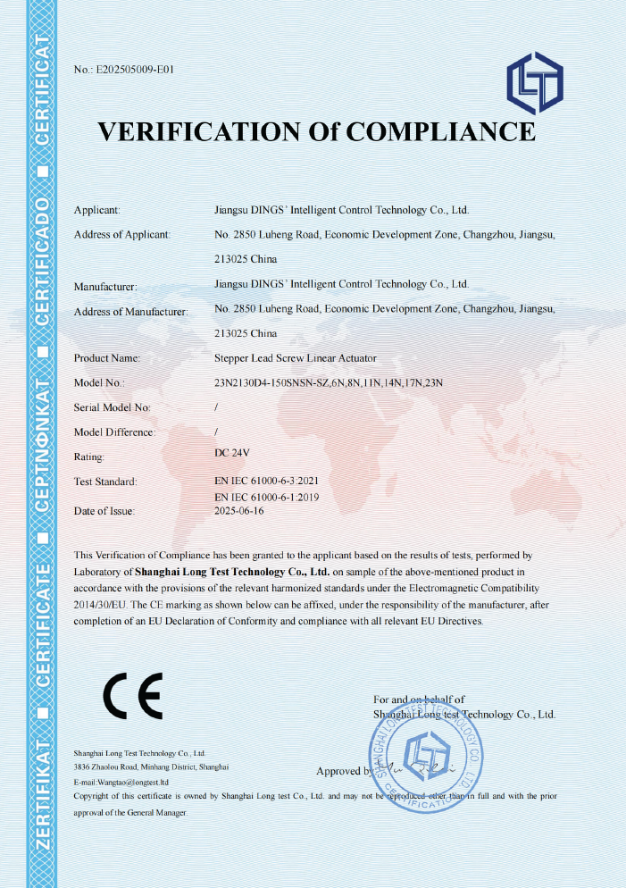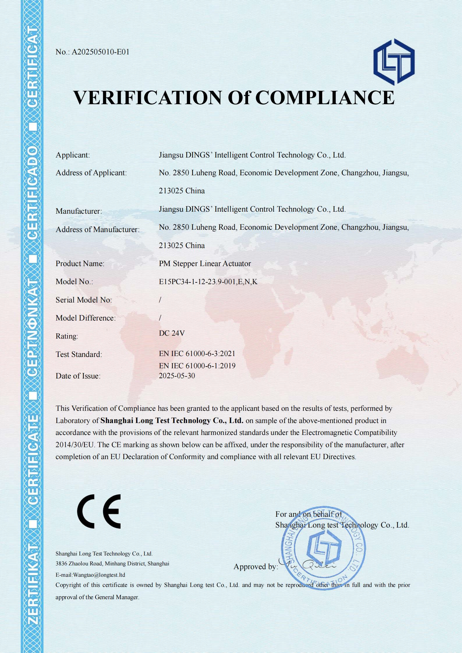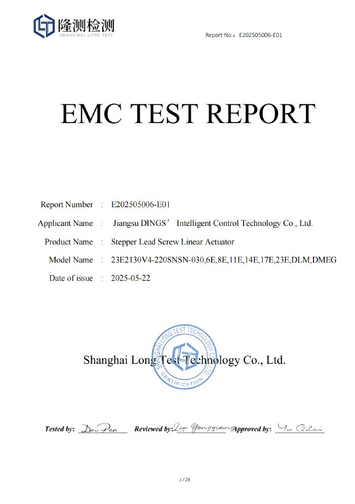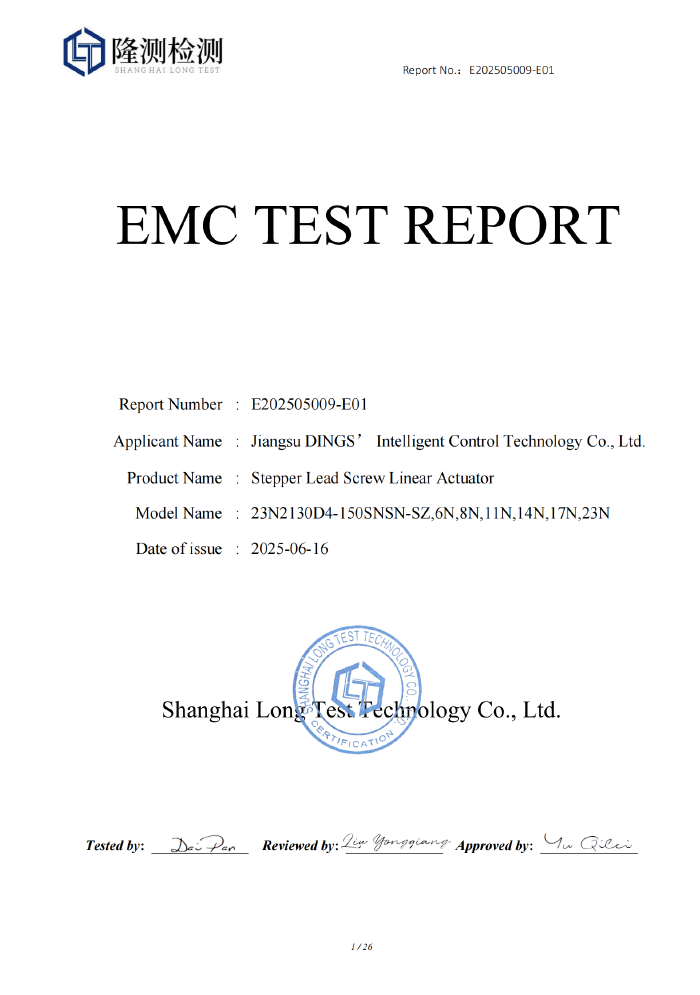 CE - PM Stepper Linear Actuator [ EMC Report ]