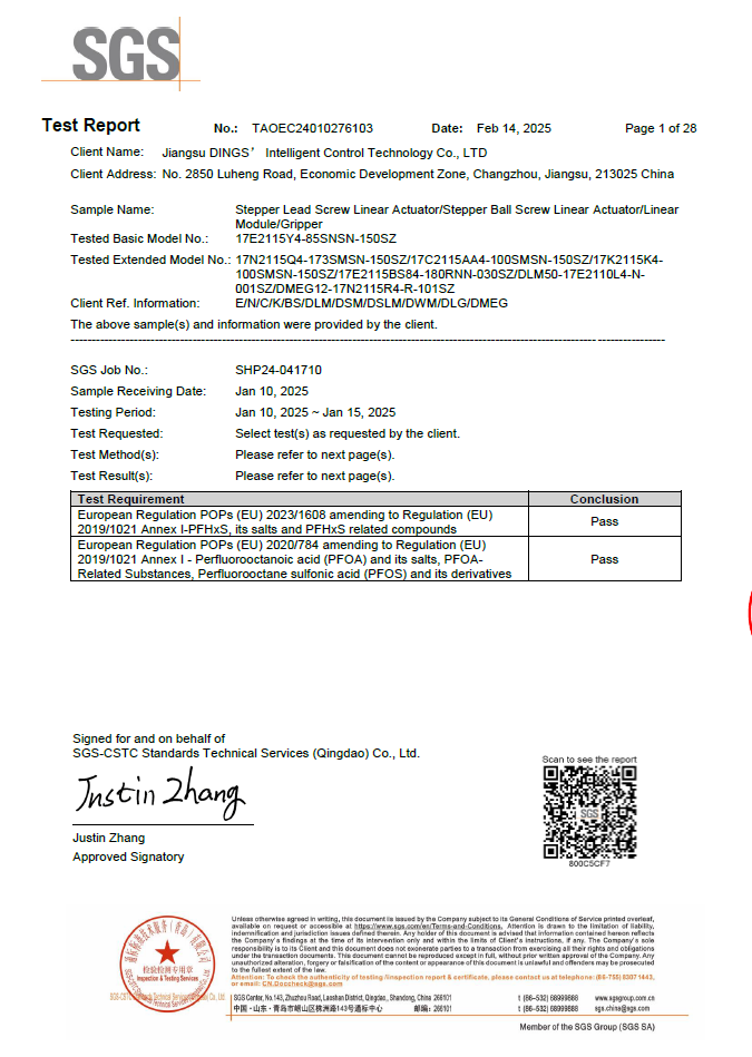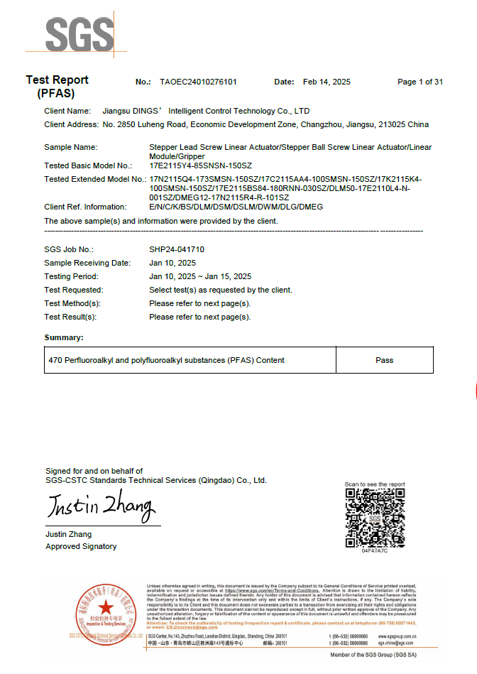POPs (PFOS, PFOA, PFHxS) - Stepper Linear Actuator Series