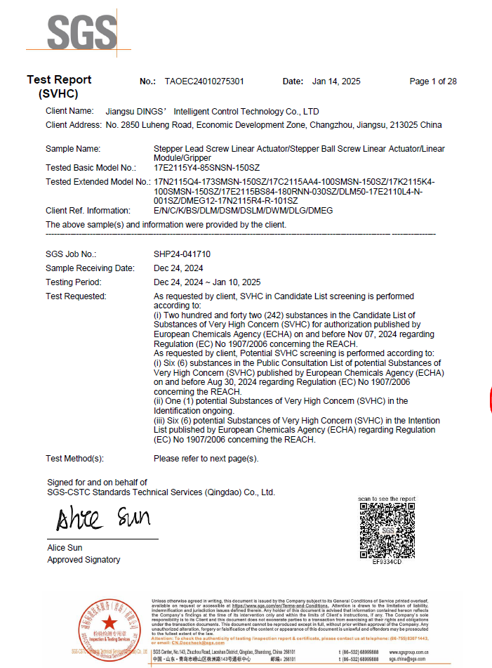 REACH - Annex XVII (PAHs & Organotin) - Stepper Linear Actuator Series