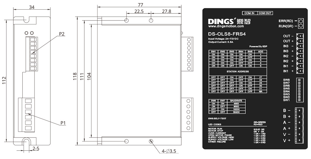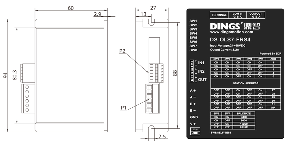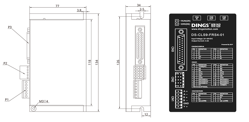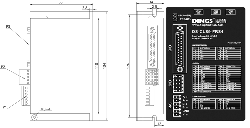 | 적용 모터 | 2상/3상/5상 하이브리드 스텝 모터 지원, 최대 허용 전류: 3.0A (max.) | ||||