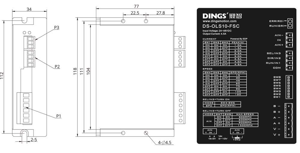 | 출력 전류 | 0.1A - 4.5A / 상 (max.) | ||||