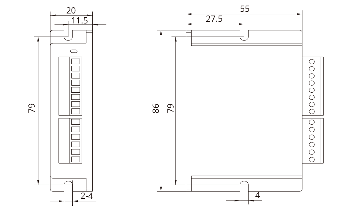 | 적용 모터 | 2상 하이브리드 스텝 모터, 최대 허용 전류: 2.2A (max.) | ||||