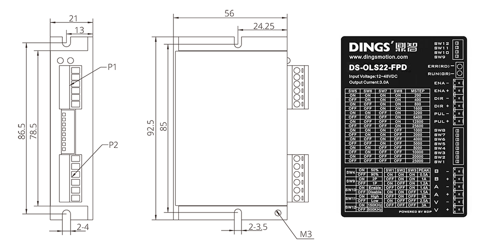 | 적용 모터 | 2상 하이브리드 스텝 모터, 최대 허용 전류: 3A (max.) | ||||