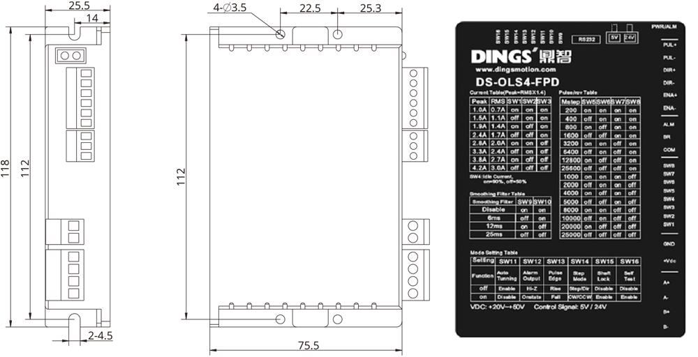 | 적용 모터 | 2상 하이브리드 스텝 모터, 최대 허용 전류: 4.2A (max.) | ||||