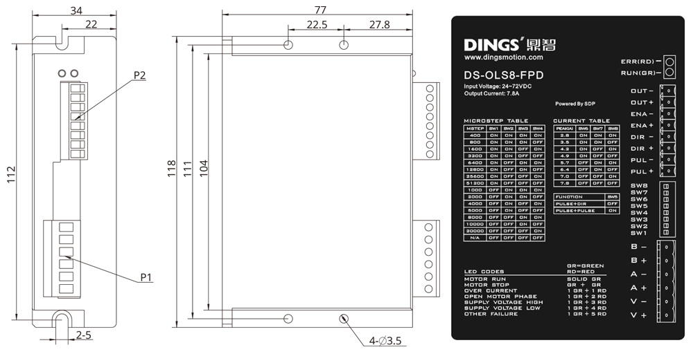 | 적용 모터 | 2상 하이브리드 스텝 모터, 최대 허용 전류: 7.8A (max.) | ||||