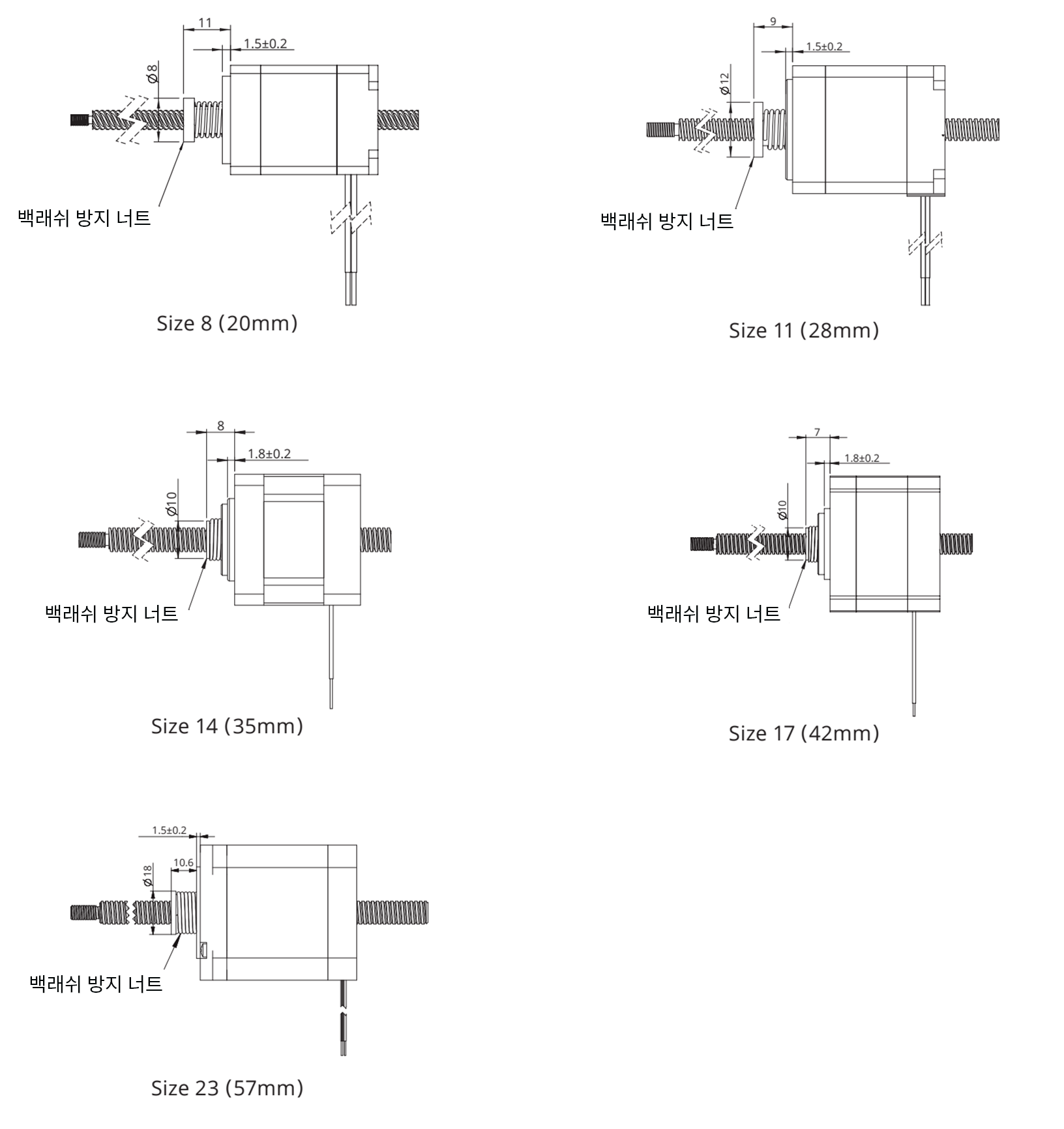 딩스는 Non-Captive 리드 스크류 리니어 액츄에이터 (사이즈 24 및 34 제외)에 적용 가능한 백래쉬 방지 너트를 공급합니다.