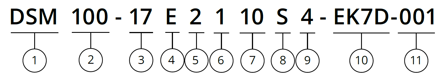 EKX = 엔코더 [X = 엔코더 분해능] P=매뉴얼 노브 B= 브레이크 X=모터 뒷축 R=엔코더 레디 C=커스터마이제이션 N=없음 |